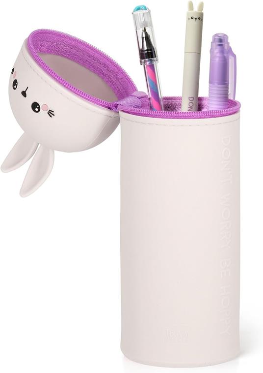 - Tutti i supereroi hanno una doppia identità: Kawaii, l’Astuccio 2 in 1 in Morbido Silicone a tema Bunny di Legami, può trasformarsi in un portapenne da tavolo semplicemente girando su se stesso! Come fa? Merito della sua capacità retrattile, che gli permette di stare orgogliosamente in piedi su ogni scrivania. Perfetto per portare le tue penne e matite preferite a scuola, in ufficio o dove vuoi tu.