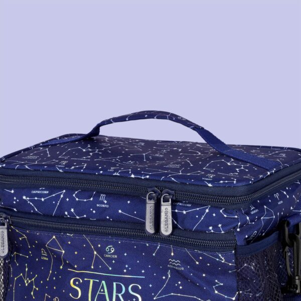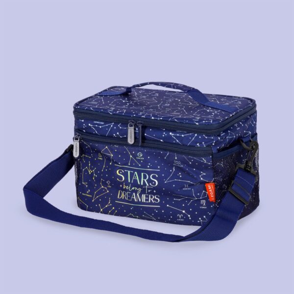 1 tasca frontale con cerniera per snack, posate o altri accessori.