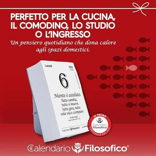 IDEA REGALO: Il Calendario Filosofico è un regalo lungo un anno: ideale per un’amica o un amico speciale, per la mamma, per il papà, per Natale e San Valentino. Perfetto da tenere a casa, per la scrivania dell’ufficio, per la macchinetta del caffè, per bar o sale d’attesa