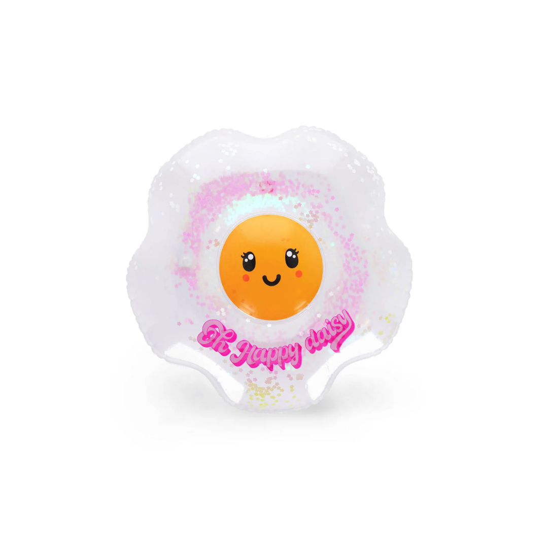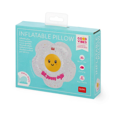 Anche tu quando vai in vacanza non sai mai dove hai la testa? Appoggiala sul morbido Cuscino Gonfiabile a tema Daisy di Legami. Che tu sia al mare, in piscina o in campeggio, sarà sempre lì per darti sostegno e i glitter colorati al suo interno renderanno la giornata ancora più scintillante.