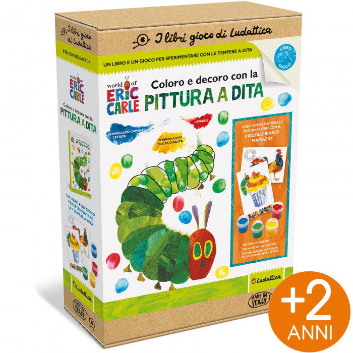 Un libro gioco con protagonista il Piccolo Bruco Maisazio e tutti i simpatici personaggi dei libri illustrati di Eric Carle, per divertirsi a leggere e giocare, facendo le prime sperimentazioni del colore con la pittura a dita. Nella scatola, oltre al libro, un set completo di tempere a dita di alta qualità e tante schede da decorare, dipingendo direttamente con le manine! Età di lettura: da 3 anni.