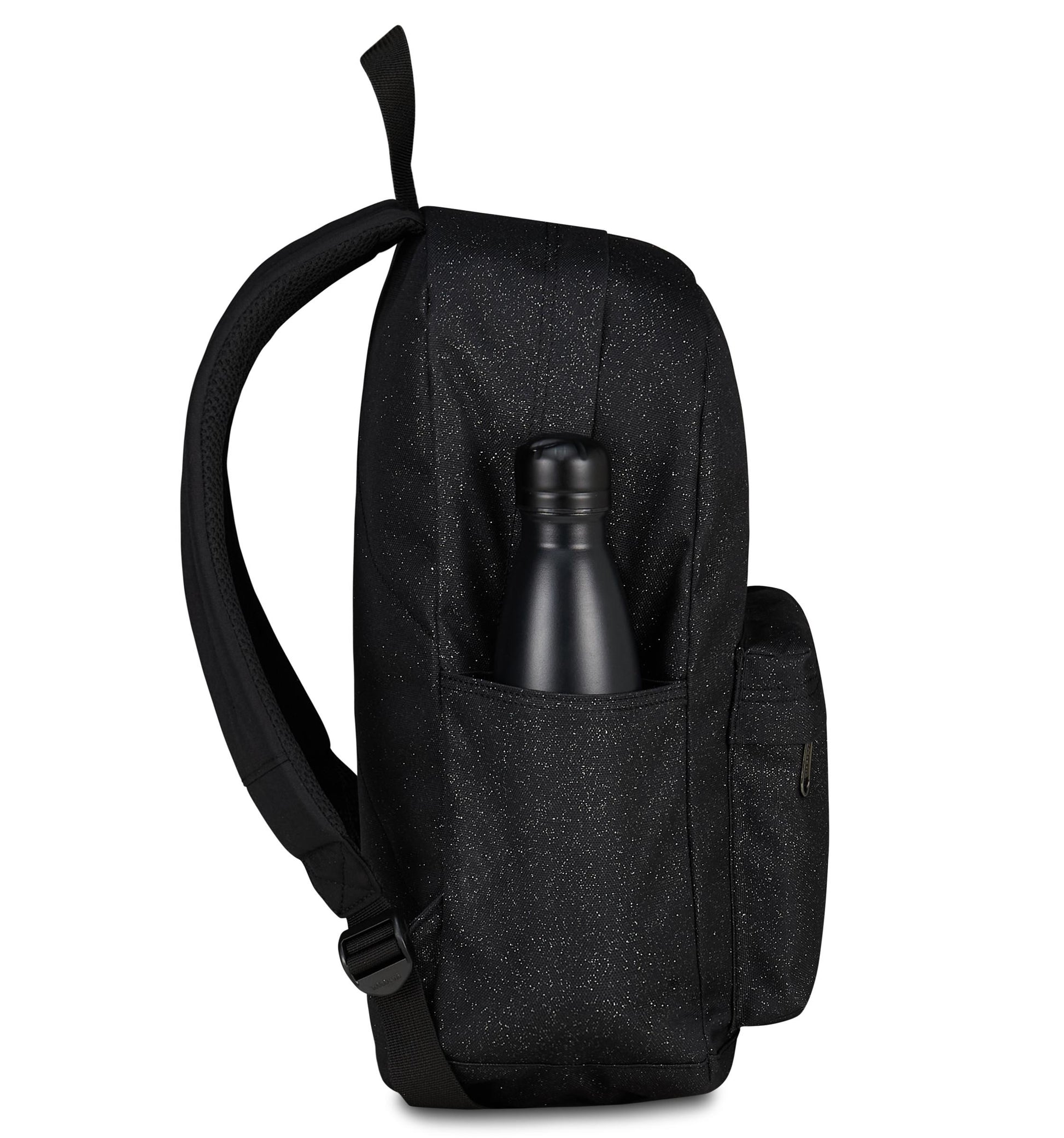 Il tessuto del Carlson Shine ha una finitura glitter ed è ricavato dal riciclo di 23,6 bottiglie in PET da 500ml. Ha 24 litri di capacità, uno scomparto principale che include porta PC/tablet e un’ ampia tasca frontale esterna. Sui lati si trovano le tasche porta borraccia, mentre spallacci, schienale e fondo sono imbottiti per garantire il giusto comfort quando lo si indossa sulle spalle.