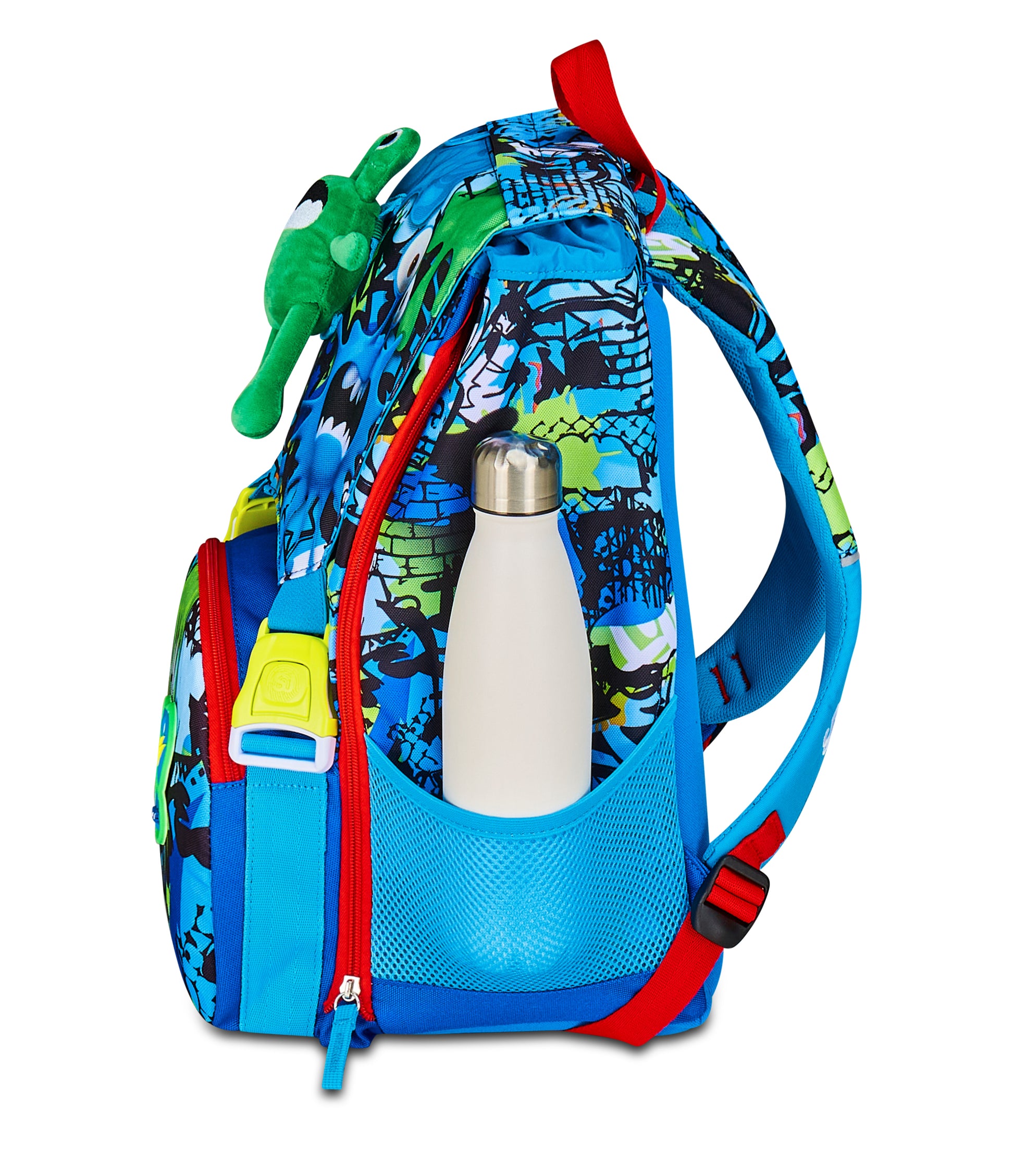 Ciao! Sono FANTASYS BOY, lo zaino estensibile SJ GANG con cui vai a scuola e con cui puoi giocare allungando OCCHI e GAMBE del PELUCHE sulla pattina! Ho un doppio scomparto spazioso, di cui puoi aumentare facilmente la capienza tramite le zip laterali per poter accogliere e distribuire in modo ottimale libri, quaderni e tutto ciò che ti serve per la tua giornata, potendo sfruttare anche la tasca frontale. Inoltre, sono davvero comodo da indossare sulle spalle, grazie a schienale e spallacci confortevoli. In più, il fondo integrato mantiene la mia struttura inalterata, garantendo la stabilità del contenuto anche a pieno carico.