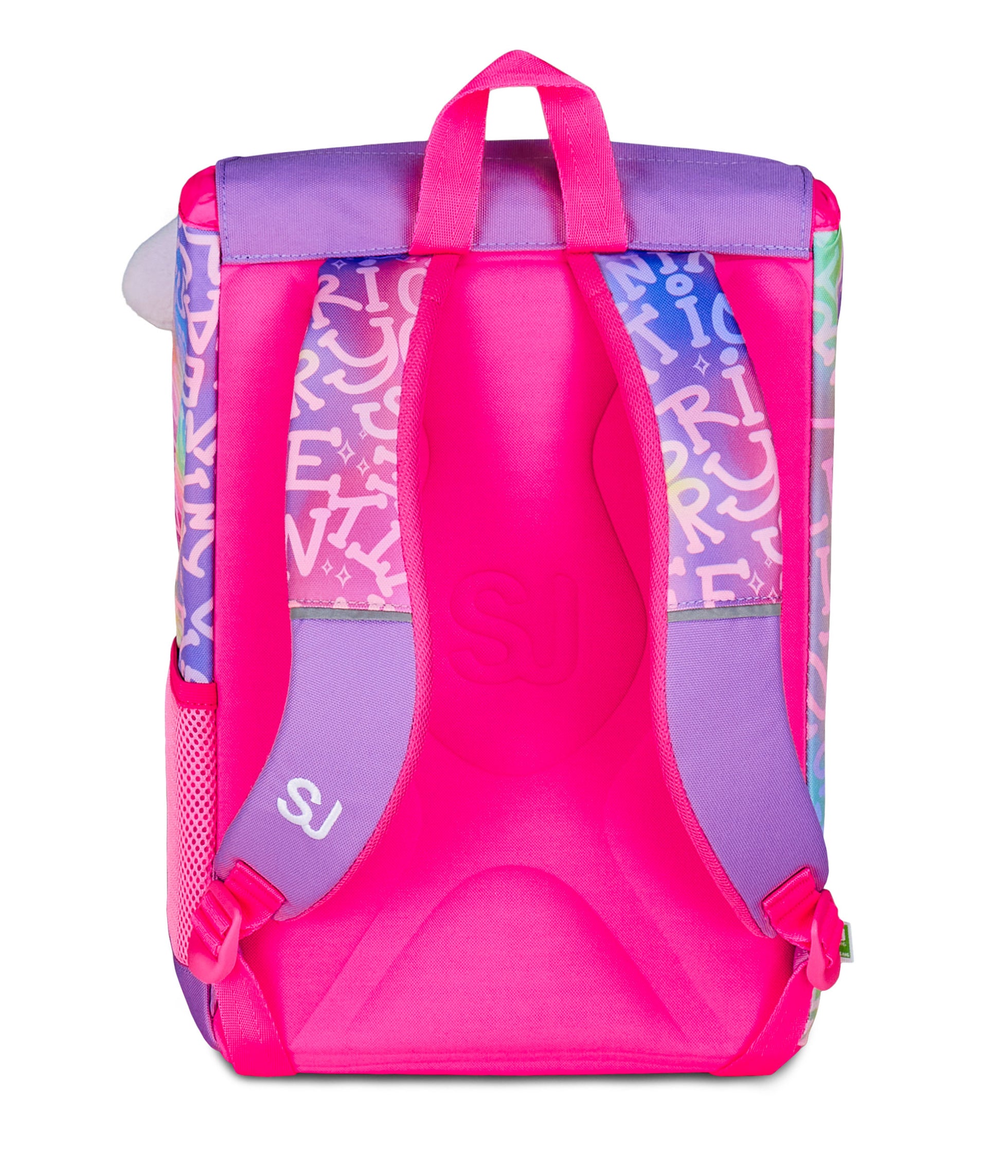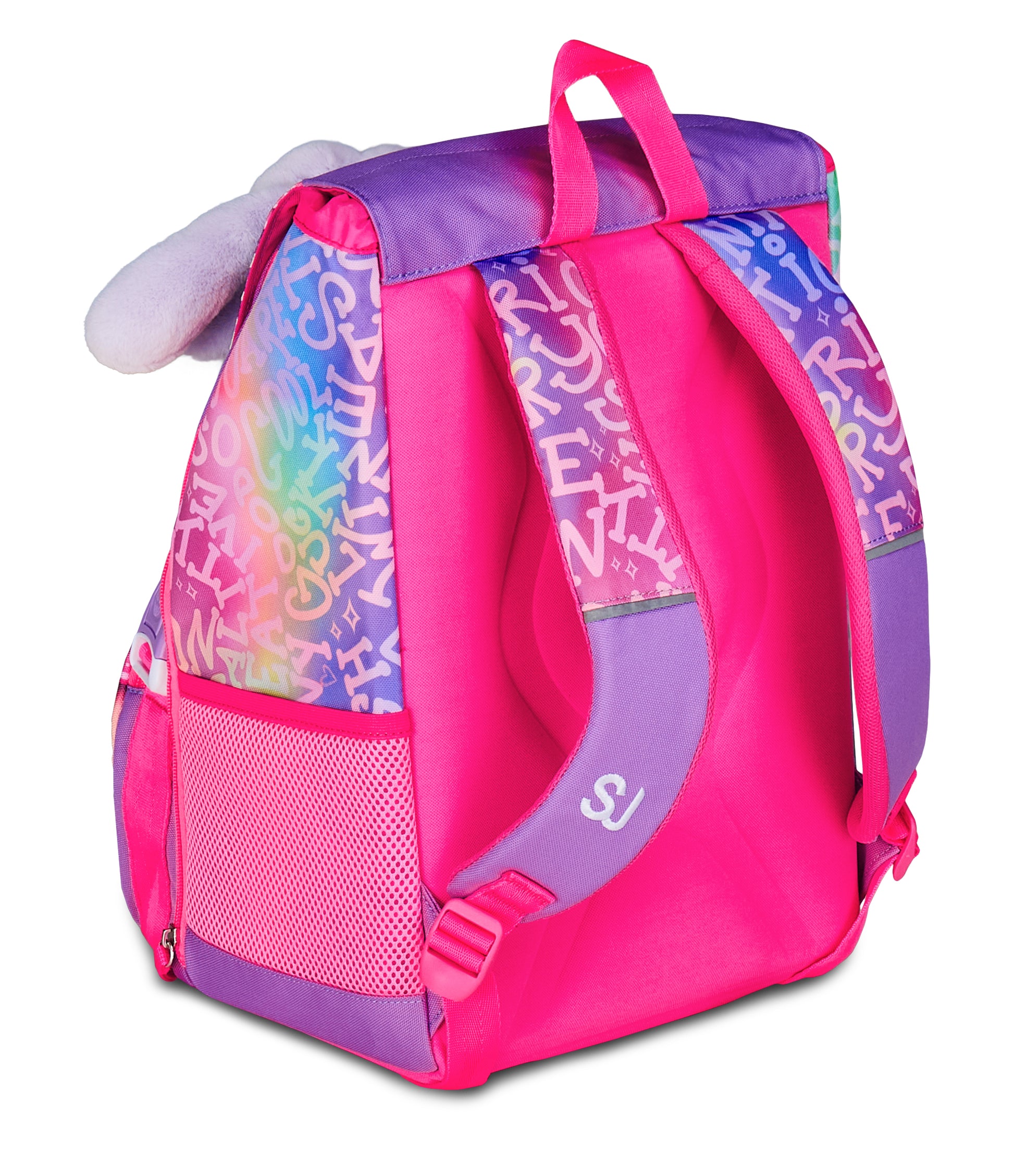 Ciao! Sono FANTASYS GIRL, lo zaino estensibile SJ GANG con cui vai a scuola e con cui puoi giocare allungando ORECCHIE e GAMBE del PELUCHE sulla pattina! Ho un doppio scomparto spazioso, di cui puoi aumentare facilmente la capienza tramite le zip laterali per poter accogliere e distribuire in modo ottimale libri, quaderni e tutto ciò che ti serve per la tua giornata, potendo sfruttare anche la tasca frontale. Inoltre, sono davvero comodo da indossare sulle spalle, grazie a schienale e spallacci confortevoli. In più, il fondo integrato mantiene la mia struttura inalterata, garantendo la stabilità del contenuto anche a pieno carico.