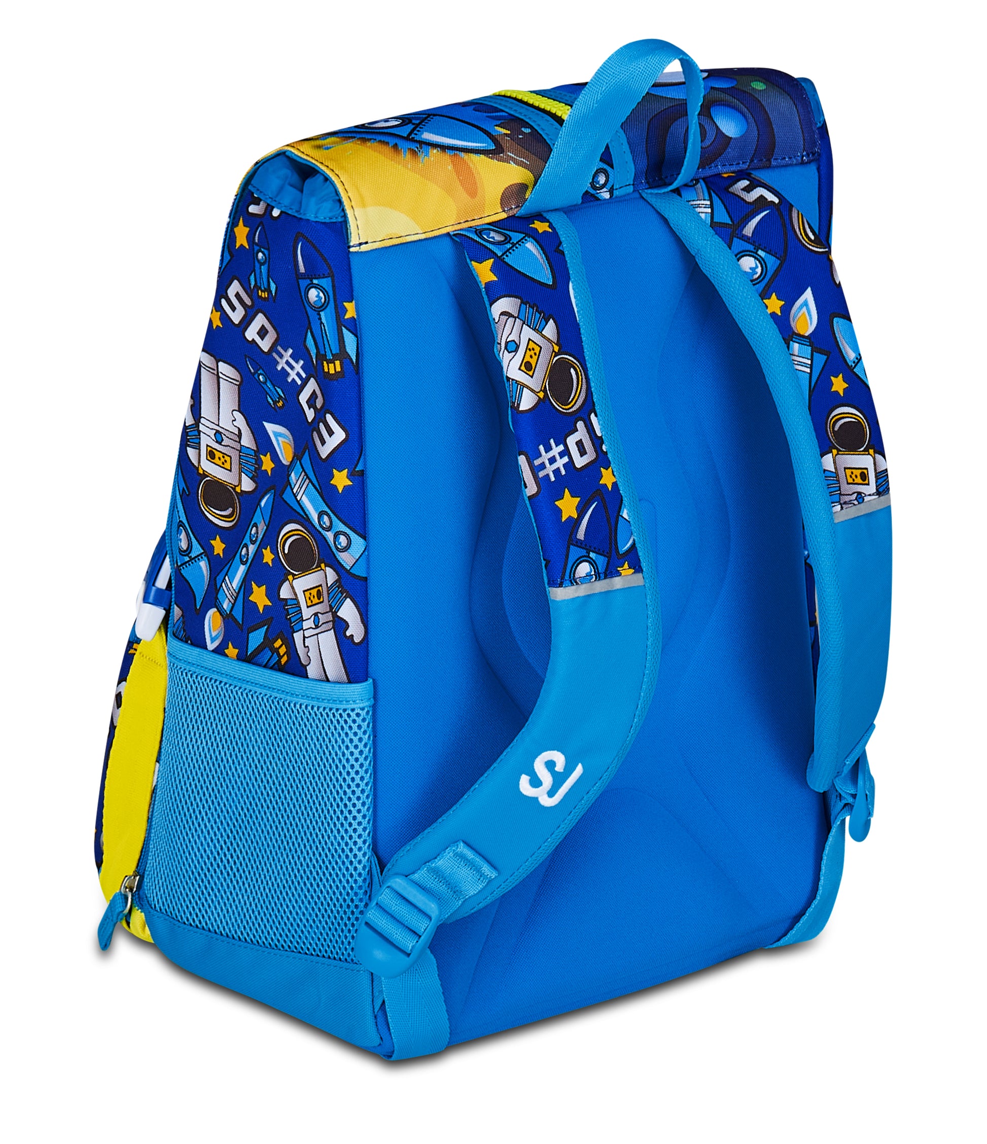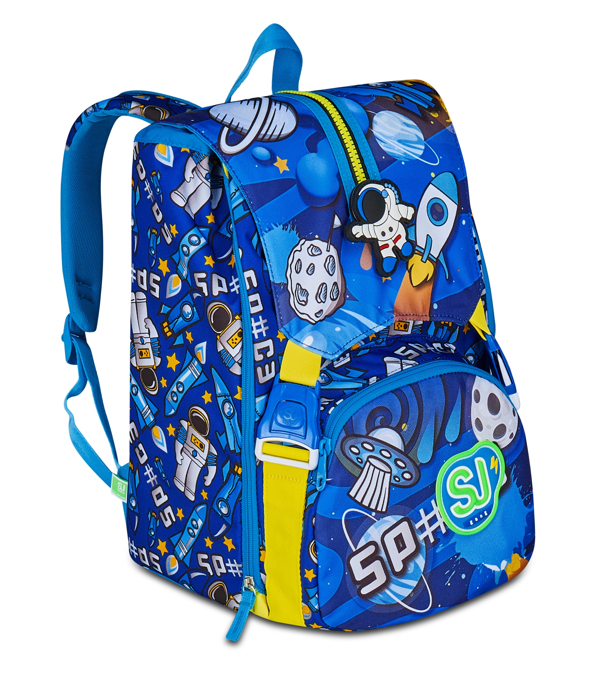 Ciao! Sono lo spaziale FLYROCKET BOY, lo zaino estensibile SJ GANG per andare a scuola e giocare! Estrai l'inserzione a forma di FIAMME da sotto la pattina e fai volare l’ ASTRONAUTA scorrendo su e giù la zip! Ho un doppio scomparto spazioso, di cui puoi aumentare facilmente la capienza tramite le zip laterali per poter accogliere e distribuire in modo ottimale libri, quaderni e tutto ciò che ti serve per la tua giornata, potendo sfruttare anche la tasca frontale. Inoltre, sono davvero comodo da indossare sulle spalle, grazie a schienale e spallacci confortevoli. In più, il fondo integrato mantiene la mia struttura inalterata, garantendo la stabilità del contenuto anche a pieno carico.